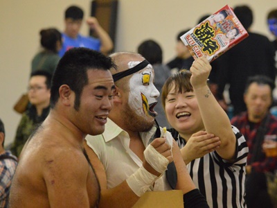 18時50分テイセンホールに。札幌ビアガーデンプロレス、ビールは飲み放題、ちょっとしたおつまみも。