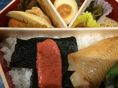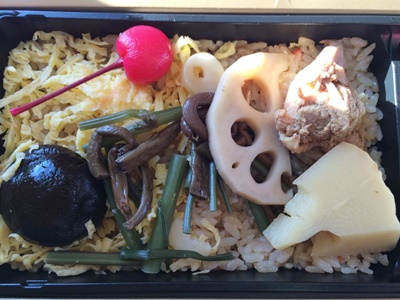 朝食は駅弁「醤油めし」。包装も簡素化されたし、種類も少なくなったかな?>駅弁