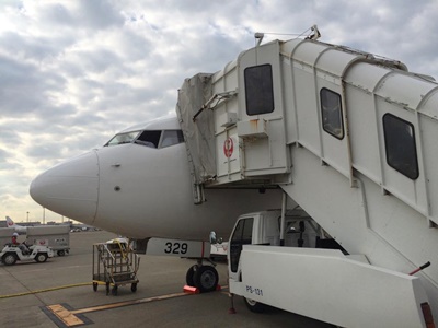 5時起き、6時に出て6時半のバスで羽田に。搭乗がバスだったので早めに、と考えて朝食はやまやの空弁。ただし待合室で完食。