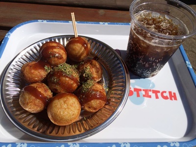 12時になったがレストランまで行くのも遠そうだったので近くの売店の揚げたこ焼きで済ます。