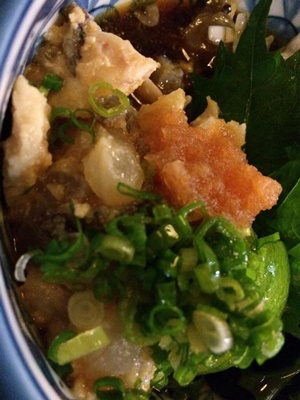 ホテルにチェックイン、2年前に行った「壺々炉」に。ハギの肝和え。