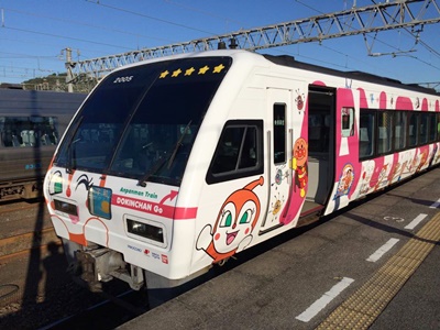 朝早く目は覚めたが、道後温泉まで行くのは面倒になったのでまたホテルの温泉に。7時過ぎにホテルを出て電車で松山駅に。8時8分の宇和海5号に乗る。指定席はドキンちゃん号。