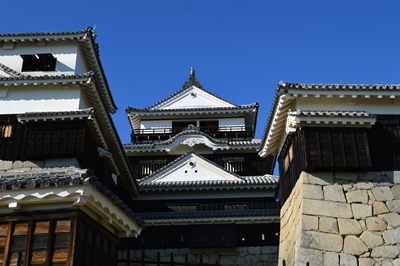 ホテルを探して歩いてるとあまりに天気がいいので松山城に登ることに。
