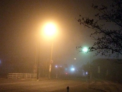5時起床、5時半チェックアウト。凄い霧。