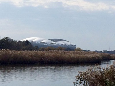 新潟駅南口からバスで弁天橋、鳥屋野潟沿いを歩く。こんな遠かったっけ?