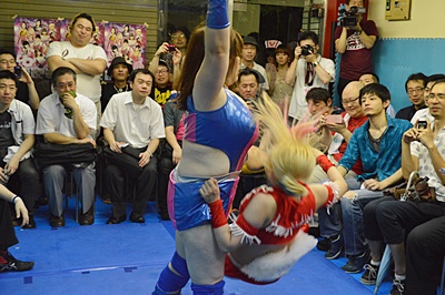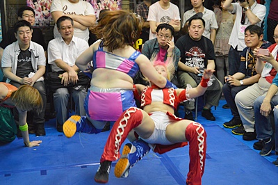 KANNAのの子をボディスラム(左写真)、