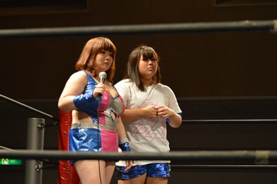 のの子とミウラの新ユニット「バスト・デラックス」が山下を挑発(左写真)。