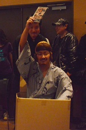 ミスター・ナガタの今日のコスプレは「子連れ狼」の大五郎(右写真)。素晴らしい。