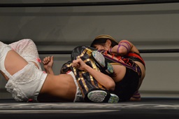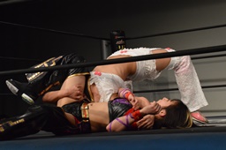 チェリー首固め(左写真)、カウント2。