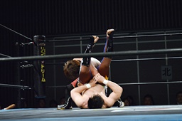 佐藤キック、風戸かわしてスクールボーイ(左写真)、カウント1。