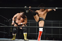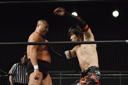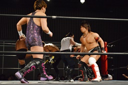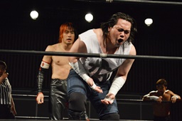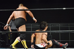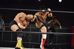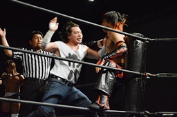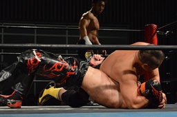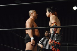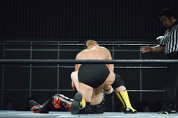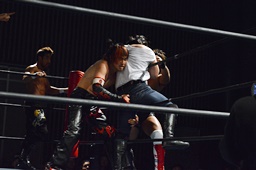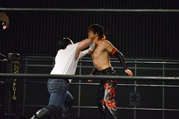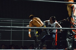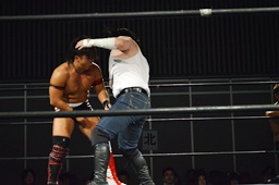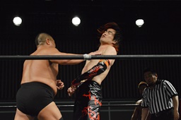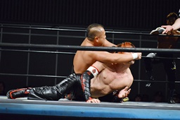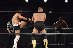 イサミ大家にOTR狙う(右写真)、今成が阻止。イサミは三富にタッチ。