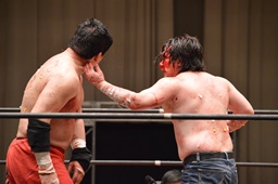 大家自ら有刺鉄線の上でバンプ、石川にヘッドバット連打(左写真)、