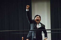 吉野「金とか使わんと自らの拳で闘え!」(左写真)この正論に観客からは拍手。そのリアクションに驚く吉野。