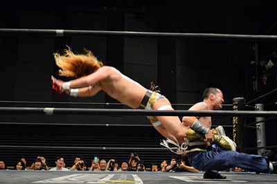 福田パーフェクトプレックス狙う、吉野レフェリー止める(右写真)