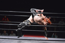 円華コーナーに上ってクロスボディ(左写真)、カウント2。