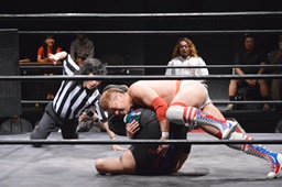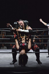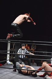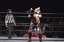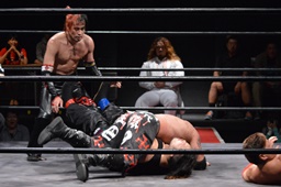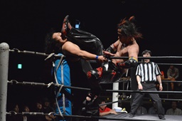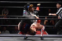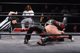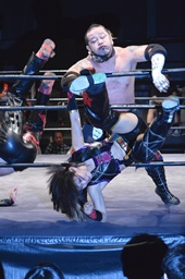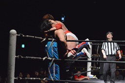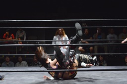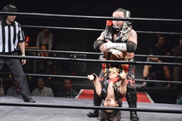 イサミ葛西をスクールボーイ(左写真)、カウント2。