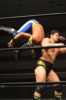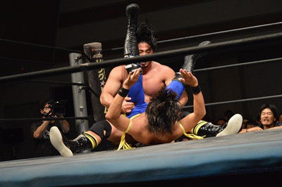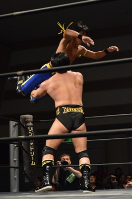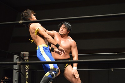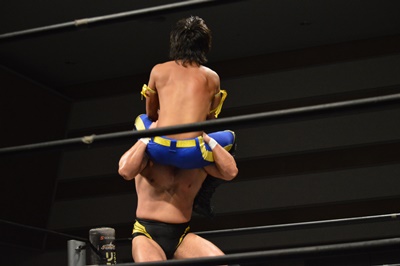 宮本リフトアップ(右写真)アンドスラム、カウント2。