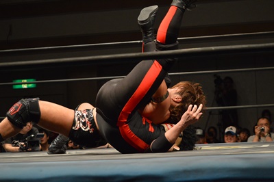 首固め(左写真)、カウント2。