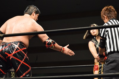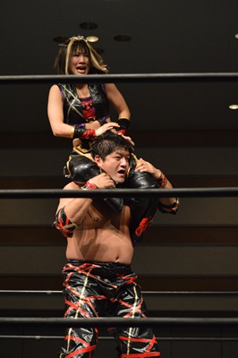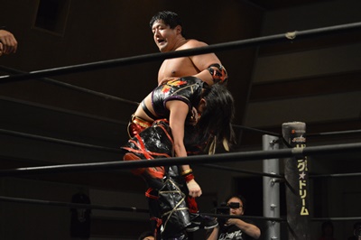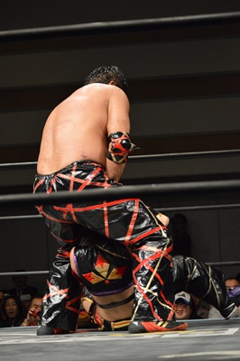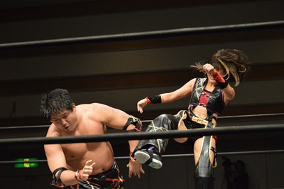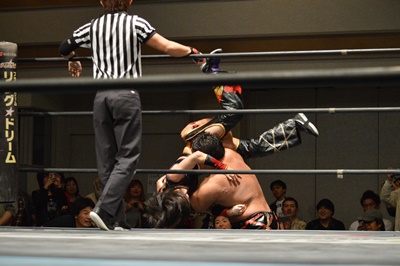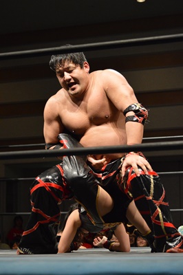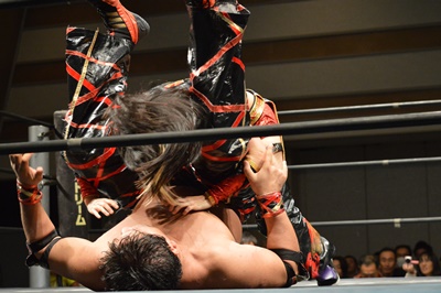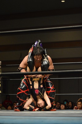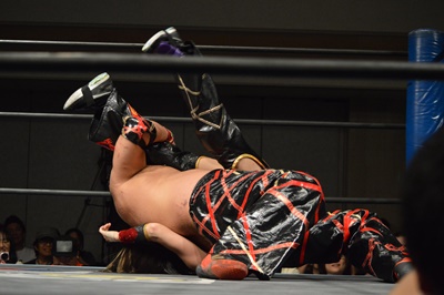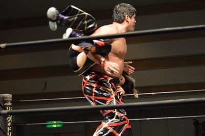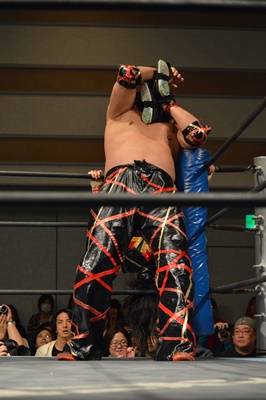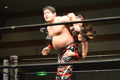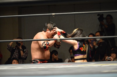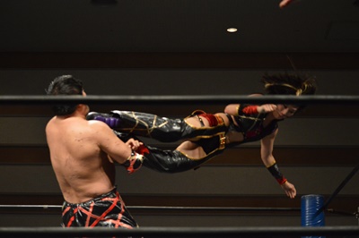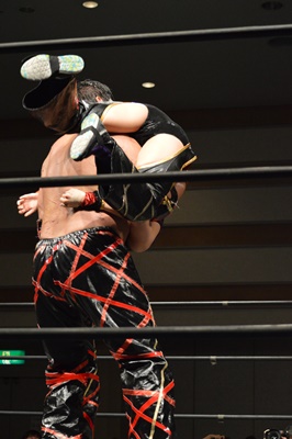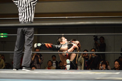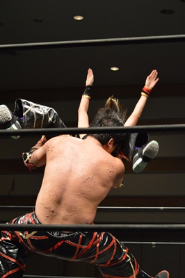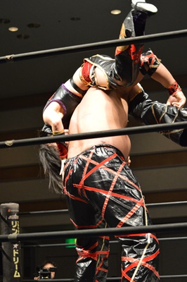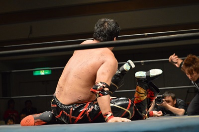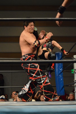 石川フェースロック(右写真)、美央ロープ。そのまま場外に。