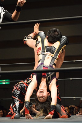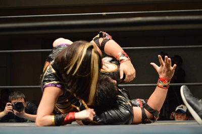 石川片エビ固め(左写真)、美央2で返す。もう一度、これも2で返す。