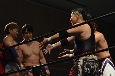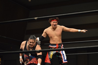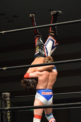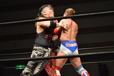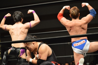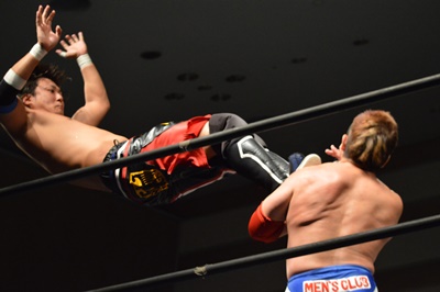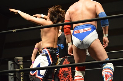MEN'Sクラブポーズ(右写真)。円華ストンピング、SAGATは風戸にタッチ。