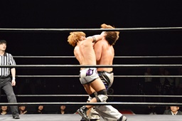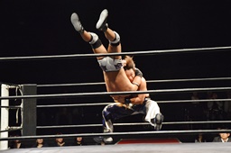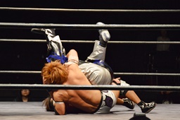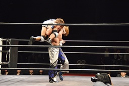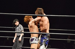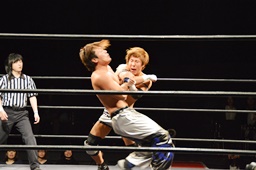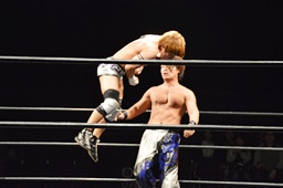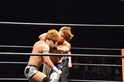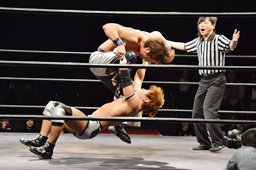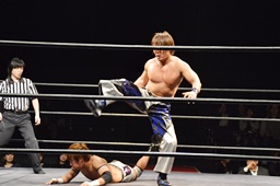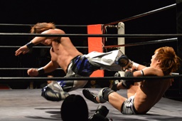 佐藤ジャーマン(右写真)からエビ固めに、カウント2。