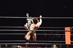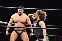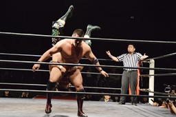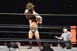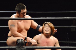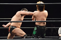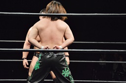 パワーボム、ウラノ回転エビ固め(左写真)、カウント2。20分経過。