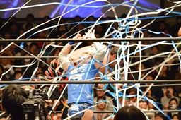 ロープに振ってショルダースルー(右写真)、カウント2。星誕期にタッチ。