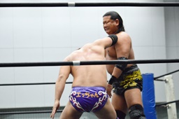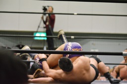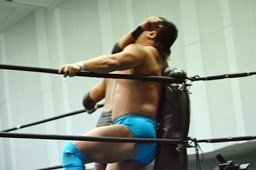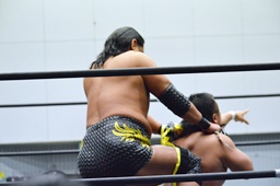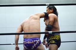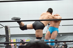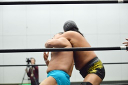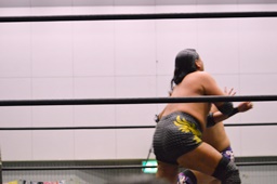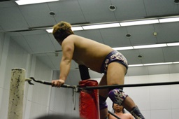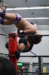 高木コーナーに上ってドラゴンリングイン、エッちゃんガットショットで迎撃(右写真)。