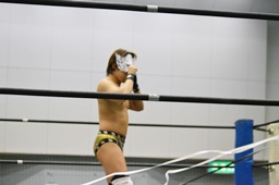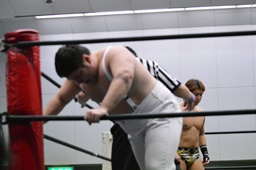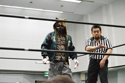 カウントが入るがYAZAWA復活(右写真)。10分経過。