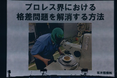 ササダンゴはすぐにステージに向かい、煽りパワポ開始(左写真)。