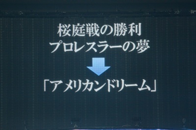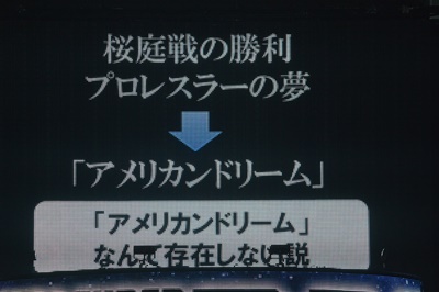 その桜庭に勝つことはプロレスラーの夢、すなわち「アメリカンドリーム」(左写真)。