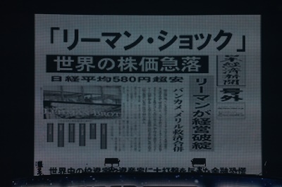 資本家を倒す唯一の方法は「リーマン・ショック」(左写真)。