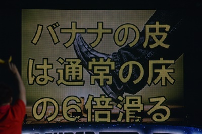バナナの皮は通常の床の6倍滑る(右写真)。すっごい滑る。これはイグノーベル賞を受賞した理論。
