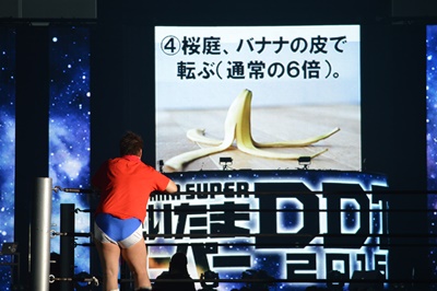 その役を担うのはディーノ。「C桜庭、バナナの皮で転ぶ。」(右写真)