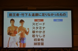 前王者の竹下&遠藤に足りなかったものを考察する。彼らの強みは「スピード」「スタミナ」「華やかさ」若々しさ」「将来性」「練習量」(右写真)