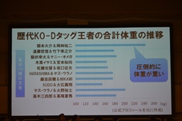 歴代KO-Dタッグ王者の合計体重を見ても関本&岡林組は群を抜いている(右写真)。