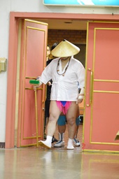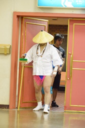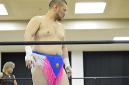 井上リングアナの「巡礼〜第69番札所〜大分県大分市巡礼〜男色人生入場〜」の声とともにディーノというか男色人生が入場(右写真)。4/4横浜には行かなかったので初めて見る。