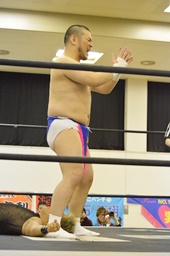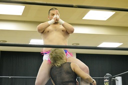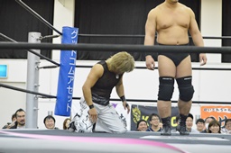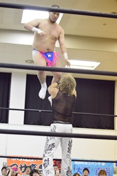 松永MIKAMIにバックドロップ(右写真)、男色にタッチ。