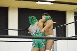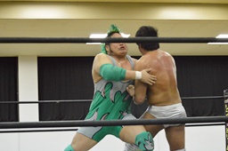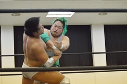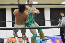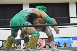 佐々木パンチ、石井ワンハンドバックブリーカー(右写真)。