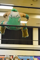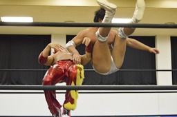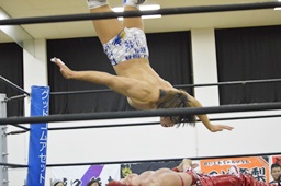 石井サマーソルトドロップ、佐々木かわす(左写真)。
