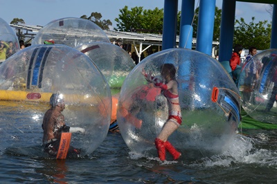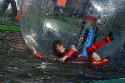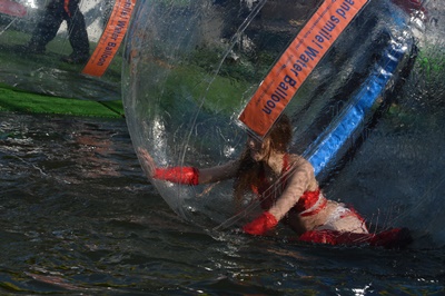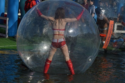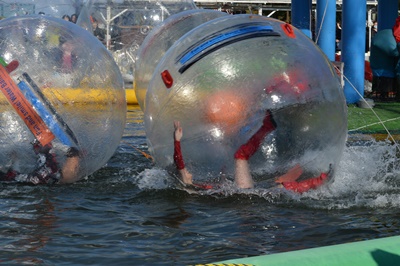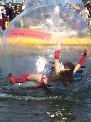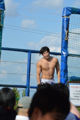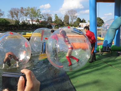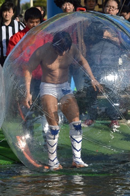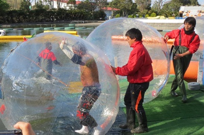 葛西が最初にウォーターバルーンに入る(右写真)。