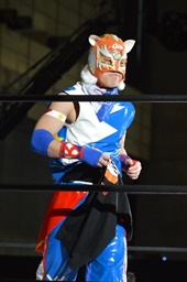 平田ふらつきながら立ち上がる(右写真)、勝俣ロープに飛んで突っ込む、平田首固めで丸め込む、カウント3。