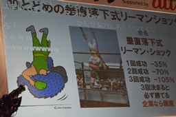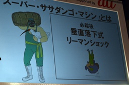 必殺技は「垂直落下式リーマンショック」(左写真)