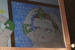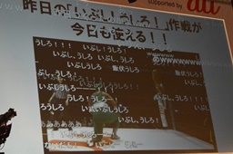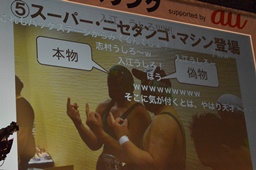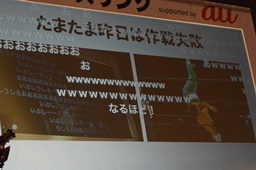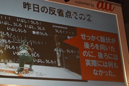 プレゼンテーション開始。タイトルは昨日と同じ「ニコニコ超会議2015 超プロレスリングにおける私の戦略発表会」(左写真)