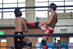 中津ブレークしてミドルキック(右写真)、ローキック。