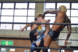 スリーパー(右写真)からコブラクラッチ、男色ブレーク。