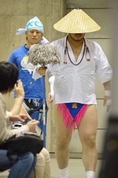 男色がファイト・一発!(右写真)、コーナーの大石がキック、