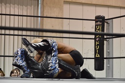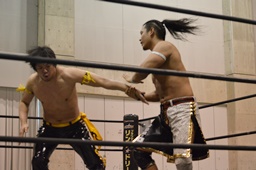 KUDO腕を取る、彰人切り返す(右写真)、KUDOパンチでブレーク。