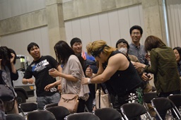 ウラノは坂口に追い回されて客席を逃げる(右写真)。